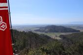 広大な面積の山城で、最初歩いていこうとしたけれど、嫌な予感がしたので狭い道を車で上っていきました。正解!歩いたら何時間かかったことか…。 |