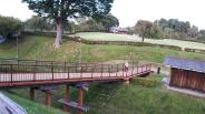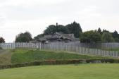 【44城目】九戸城からのはしごです。奥に有料施設(復元館?)がありましたが、手前で引き返しました。広場が一面芝生でとてもきれいで、シートでも敷いて横になれたら気持ち良さそうでした。 |