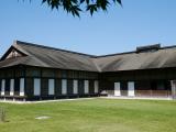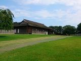 | 【29城目】 八戸駅からバスで八戸市博物館(停留所名は「根城」)まで行き、そこでスタンプを押した後、そこから本丸まで歩きました。本丸跡には、主殿、馬屋、工房、納屋などが復元されています。人形や馬の模型が置かれているなど、展示を意識した博物館風の施設でした。 青森なら、この時期でも少しは涼しいかと思いましたが、やはり暑かったです。炎天下で日傘の貸出があったのは助かりました。 |