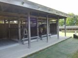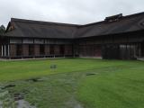 | 6城目。 弘前から奥入瀬、十和田湖、十和田市現代美術館と巡った後に訪問。100名城初心者であったこともあり、八戸市博物館で係りの人から「スタンプ良くないですよ」と親切に教えてもらったにもかかわらず試押しもせず押印。見事につぶれた陰影でした・・・。 その後、広い敷地の一番奥にある木製の柵で囲われた本丸跡へ。空堀に架かる木橋を渡り、料金所で別の紙にスタンプを押させてもらうと、きれいな陰影・・・。内部は、14世紀に南部氏によって造られた主殿、馬屋、工房などが再現されています。再現の際には、昔の大工道具や釘を用い、青森ヒバを材料に古色を出すために柿渋塗と丁寧な仕上げで、見ごたえのあるものでした。この日は訪問者も少なく中世の城をのんびり満喫できました。 |