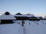 | 16城目。雪の降る寒い中、ボランティアの方の説明を聞きながら。時間が押し迫っていたので最後まで聞けず残念。 |