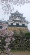 | 今回の登城で2回目。今年は「彦根城410年祭」が12月10日(日)まで開催中で賑やかでした。大手御門跡から入場後、天秤櫓⇒時報鐘⇒太鼓門及び続櫓⇒天守 附櫓及び多聞櫓⇒西の丸三重櫓⇒楽々園⇒玄宮園⇒開国記念館と巡る。スタンプは、開国記念館で押印。 本丸では、ゆるキャラ「ひこにゃん」にも会えました。天守は国宝、雄大で美しく素晴らしい。桜は、満開でした。夢京橋キャッスルロードで昼食後、小谷城へ向かう。(滋賀県) |