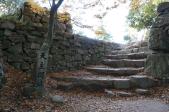 石垣はもちろん、石段がみごとです。のぺっとコンクリートを流してしまったり、きっちり整備された段を昇るとお城に登った感じがうすくなります。もちろん、意匠的にもお城らしいです。 |