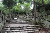 | 5城目。大手道という石段は奥深く、森林の中に突入します。頂上の天主台礎石群付近から、琵琶湖が見れます。伝羽柴秀吉の屋敷跡もあります! |