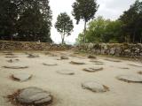 56城目 うどん県(香川)より1泊2日の旅。2日目は、信長の夢の城、念願の安土城にやっと来た。登り口で、杖を借り幅6mの大手道、約180mも直線が続いているという階段を登る。石段のあちらこちらに石仏があり、おさい銭も有った。何の為に石仏を使用したのだろうか?大手道の左右には伝羽柴秀吉邸宅跡、伝前田利家邸宅跡、伝徳川家康邸宅跡が有った。ふうふういいながら30分で天主閣跡に着く。ここに地上6階、地下1階の城が有り、信長が住んでいたんだなぁと思ったら感慨深かった。ここから琵琶湖が眺めて、とても気持ち良かった。ぐるりと1周して1時間ちょっとかかった。スタンプは、信長の館で押印。次は観音寺城へ。 |