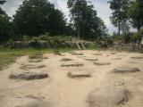| 【7】彦根城から足を延ばし、安土城へ。スタンプは麓の受付ではなく、山頂にあるとのこと、石仏を踏まぬように石段を上りました。 |