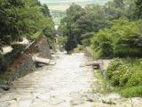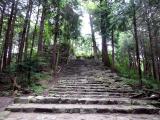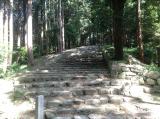 | 直線の急で長い石段が面白い。よく探すと石段に仏石も利用されている。 |