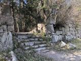 | 安土城のと同時にスタンプを押印。 スタンプのみにしてしまったので、もう一度アタックしたい。 2020年10月11日 八幡山城に登城後、観音正寺側から本丸に登って平井丸へ。スタンプのデザインになった虎口を見学。足場がかなり悪く、暗くなると不安だっためここまでで撤収。良くも悪くも未整備です。本丸に着いた時も、ここが本丸で合っているのか不安になりました。 スタンプのみにしてしまった事が引っ掛かっていたのですが、これですっきりしました。 |
