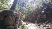 | お城跡は山の中のため歩きやすい靴がよい。入り口で平面図の説明してもらえます。 ?とその先岩のまで行くことができます。 |