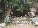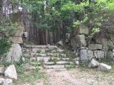 57城目。彦根城から楽市発祥の地と云われる石寺地区(天文16年・1549年に六角定頼が観音寺城の城下町石寺に楽市令を布いたのが初めと云われる)の石寺楽市会館に車で行き、終了間際の3時にスタンプをゲット(石寺楽市会館は午後5時までと記載されているものが多いが、午後3時で終了)。観音寺城はここに車を止めて(有料)歩いて登る(かなりきつそう)か、有料林道を車で観音正寺の駐車場まで登り、そこから観音寺城へ歩くか、などあるそうだが、今回は時間も遅くなったので石寺楽市会館から少し登った所にある佐々木六角氏の御屋形跡までに留めることにした。御屋形跡は天満宮の標識の先の大石段や石垣など観音寺城当時の遺構とされ、安土城や大阪城などの近世城郭に先行して築かれた石垣づくりの観音寺城の一部を見ることができました。 |