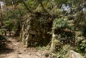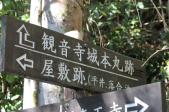 | 33城目 「信長の館」の近くにある桑実寺経由のルートで登城。自動車末使用の場合は一番短いルートのようですが、拝観料300円が必要です。また山頂の本丸跡につくまで石垣などの遺構はほとんど見かけませんでした。観音正寺まで行ってから同じルートで下山しました。道が荒れているので、登山靴推奨です。 |