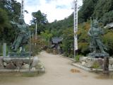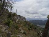 観音正寺まで登る林道の入り口まで行ったら、道路が閉鎖されていました、先日の台風で崖崩れがあって通行止めの張り紙、途方にくれていたら張り紙の所に迂回路を書いてある地図が置いてあることを発見。1枚もらって早速来た道を戻って迂回路から林道を登り始めましたが、とんでもない道路でした、急こう配で道幅は1台が通れるだけ対向車が来ないことを願いながら何とか駐車場まで到着できました。観音正寺には徒歩で15分位です、お寺からさらに15分位歩いて本丸跡に到着です。 |