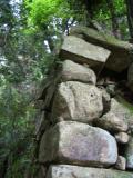 | さすが山城とあって、急な石の階段を汗をかきながら登り、途中の観音生寺境内で一休みした後、本丸跡まで登場しました。本丸跡は木々に囲まれ爽やかな風が吹いており、汗ががスーッと引く感じで登場した達成感が味わえますよ。 室町時代の応仁の乱で、当時の武士が重い鎧を着て、この石階段を駆け上がって戦ったと思うと、当時の武士はすごいなと思いました。 |