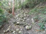 | 観音正寺でスタンプを押して、境内の脇道から入って小道を進んで行きました。 途中、道を間違えたのではという不安もよぎりましたが、そのまま進めば開けます。 石段を登れば本丸跡です。 |