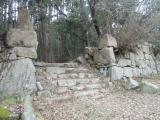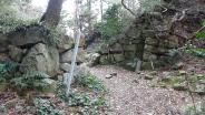 | 88/100 2回目の登城です。安土城から移動。観音正寺林道を通って登城しました。林道入口で整理料600円を支払い駐車場まで行き車を停めました。駐車場から観音正寺までは緩い登り坂を進み10分程度で着きます。観音正寺でスタンプを押印し入山料500円を納め、大仏の裏の木戸から城跡に向かいました。本丸には10分弱で着きます。本丸から搦手口、井戸跡を見て平井丸、落合丸、池田丸と進み、今回は大石垣は見学せず引き返しました。三角点方面にも行きたっかたのですが安土城登城で足にきていたため断念し40分で登城を終えました。 |