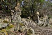 | スタンプは安土城と同じ場所にあって簡単に押せたが、 城はヤバイくらい大変な山城だった。 車で観音正寺まで行き、城に入っていった。 天然の大きな岩を利用した石垣もありすごい。 |