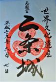 | 儀礼的用途の側面が強いためか、今までに巡った城とはだいぶ印象が異なる。 品がある感じ。 大政奉還の地に居るのかと思うと感慨深い。 スタンプはゴム印式のものが「ご自由にお捺し下さい」みたいな感じで置かれているスタイルなので、スタンプ台のインクがかなり薄くなっていた。 |
