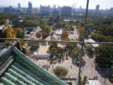 | 今回の旅最後になります。森ノ宮から玉造口を通って12時頃に入城しました。内堀を見ながら先ず青屋門に向かい、その後極楽橋を渡って天守を目指しました。何しろ皆さんおっしゃるとおりで平日だというのに観光客(外人)が多かったです。 なんだかんだで、天守閣に着いたのは午後1時頃になってしまいました。取り敢えず、エレベーターで5階まで(ここでも並びました)行き、その後階段を8階まで登りました。 展望台からの眺めは中々素晴らしいものがあります。それから下りながら各フロアーを見学しましたが、途中3・4階は写真撮影が禁止となっています。 1階に下りて受付案内でスタンプをいただき、桜門・多門櫓・大手門等を通って午後2時頃に帰りました。なお、11月8〜16日まで、一番櫓・千貫櫓・多門櫓・金蔵が400円の別途料金で、特別公開していました。 |
