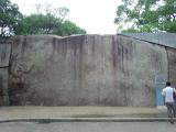 | 大阪城公園駅から天守閣を目指すが公園の広大さと暑さのためか極楽橋ではやくも休憩タイム。天守閣内ミュージアムで大坂夏の陣図屏風の世界を鑑賞。桜門、大手門とまわり南外堀から屏風状の石垣を鑑賞する。移動のため時間不足となったが、次回訪問しゆっくりとまわりたい。 |