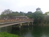 | 20城目! 二条城の後、この城に登城。ゴルデンウィーク真っ最中なのと、公園もあるためか、城の入場券を買うのにも、エレベータ乗り場も長い列ができていました。今回は2回目ということで、城の中は大まかに見学し、まわりの広大な石垣と堀、門をじっくり見学してきました。さすが将軍家の城ということで、広い二重堀と石垣、特に大手門や桜門の巨石(108トン)は見事としか言いようがなかったです。 |