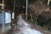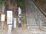 | 駐車場のおばさんから飴を頂きました。誰もいなく、私逹以外は誰もいなく急な階段を上がる。 途中木の枝が置いてあるので、杖がわりに借りて上を目指す。 やっと途中、1人発見。 何だか人もいなく寂しい感じの所。 時間もなく、途中で断念しました。 |
