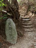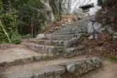 | 登山口では、金剛山へ上る方と通りすがりに挨拶。行きは山道より途中 倒木ありでした。帰りは石段を下りました。 |