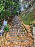 | 河内長野駅からバスで。お祭りのせいか渋滞とのことで中々バスがこなくて参りました。金剛登山口バス停から豆腐屋さんへ。結構な上り坂です。ここでスタンプゲットし山登りへ。途中で分かれ道があり、こちらが千早神社への道だと説明看板が。注連縄のあるこの道はひたすら登り階段。なんとか登りきって千早神社へ。苦労しただけに感無量です。帰りは登ってきた階段をすり抜けて反対側の神社入り口へ。ここにみなさんが書いている急な石段があったのでひたすら降りていったらバス停のすぐ前に出ました。偶然にもすぐにバスが到着して、これも楠公の威徳と感謝して帰路につきました。 |