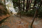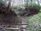 | いきなり目前に現れる急な階段に圧倒される。下調べもせずに来た事を悔やむ。 その後も体力勝負の道に気持ちが負け、時間的にも都合が悪く引き返す事に。 |