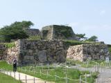 | 数年ぶりに登城。以前登城したときは、あらゆる場所に自由にいけて見学できたのだが。 今は人口階段や通路のようなシートができていたり、石垣が不自然に崩されていたり、一方通行になっており、山城では無く観光地になっていました。 |