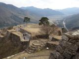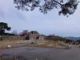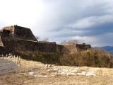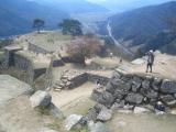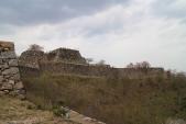 | 第13城目。 ツアー参加にて登城。ガイドの方より、一般の方々は車を降りて歩くが、ツアーで来るとマイクロバスで途中まで来れるとのこと。ただ、その途中からは歩きというか軽い山登り。石垣と眺望は素晴らしい。 |