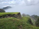 | 30城 バスツアーにて登城。あいにくの雨だったが、足元もマットが敷かれていて歩きやすく、ロープや柵も危ないところにはしっかりつけてあった。天守閣跡に登るには階段も。。。 前回の時は、ロープもなく、突き出したいくつもの櫓にも行けました。空気が違っていて、感じて何らかのパワーを感じたものでした。 少し、期待が多かっただけに「竹田城博物館的」になってたのは残念でした、 |