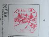 | 91城目 9:43登城 鉄道で来て「駅裏登山道」で登城しました。パンフレットには上り40分と書いてありますが、頑張って頑張って20分で到着。標高差250mで距離800m。すごく疲れました。下りは普通に歩いて15分。バスもありますが、乗降場まで20分、さらににそこから料金所まで20分かかるそうです。かなり混んでいるかと覚悟して行ったのですが、ツアー客がおらず、すいていました。ひどいときは城内の一方通行の歩道が渋滞するそうです。歩道は城では珍しくロープが張ってあり、迷わず回れます。ちなみに駅〜城〜駅で8000歩でした。駅の案内所の方はとても親切で、色々とお話をきかせてもらいました。でも姫路からは遠かった。 写真の一番左はスタンプ置き場の「竹田駅」で、スタンプは出札口にあります。 |