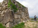 | 天候:曇りのち晴れ 仕事が有給休暇で休みなので竹田城へいくことに。山城の郷の駐車場(無料)に車を停めて平日に登城。 朝早く到着したので天空バスはまだ運行していなかった。(9:10頃〜 平日閑散期ダイヤ) なので西登山道(一般車両通行不可区間)を歩きで登っていきました。西登山道〜大手門コースを45分ほど歩き竹田城の料金所で500円払い入城。縄張りの規模が大きく石垣城郭も立派でさすがに人気が出るだけのものがあると思いました。城内の広々とした雰囲気は居心地がいいです。見学通路は整備されていますが、所どころ大きいクマバチが飛んでいるので避けながらいきました。クマバチは温厚な性格なので人を刺すことはほとんど無いそうです。城内最後のほうではスタッフの方が見学通路に敷くものが何が良いか(コンクリ舗装、木材チップ、石畳)のアンケートをおこなっていたので、歩きくらべをして絵葉書をいただきました。城内整備を真摯に取り組む対応には頭が下がる思いです。 帰りも天空バスは山城の郷方面には昼過ぎにしか行かない為、西登山道を戻りました。下山した後は立雲峡へいき、竹田城の全容を遠くから眺めました。 |