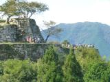| ものすごいクルマと来訪者にビックリ。 これほど人気がアルとは、知らなんだ。 麓には駐車場を求めるクルマがあふれ、…人、人、人。 羽柴秀長に攻められ、その居城ともなった。 天空城とも、日本のマチュ・ピチュ(ペルーの古代遺跡)ともいわれているが、これほどの人気とは。 何だかんだいっても、城郭ファンは未だマイナーなため、日本百名城とはいえ大抵の場合、人気が疎らであることが多いのだ。 今まで攻城したなかで、間違いなく一番の人気度合い。 |