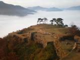 | ★★19城目★★ 北近畿旅行2日目に登城。 雲海に浮かぶ写真を撮ろうと11月下旬のこの日を登城日に定めましたが、前日は雨。天気予報では当日も雨だったので半ば諦めていました。が、前日深夜から雨は止み星が出るほどに。 淡い期待を抱きつつ、朝5時に和田山のホテルを出て、まずは「雲海に浮かぶ竹田城」撮影スポットである立雲峡へ。 駐車場から10分ほど、真っ暗な山道を懐中電灯と前を行く同志を頼りに、迷いながら、汗だくになりながら撮影スポット求めて歩きました。 雲海の出方は上々!というか出すぎて竹田城を飲み込んでしまい、「竹田城跡跡」状態でしたが、しばらく待つと竹田城がその堂々たる姿をあらわしました。それはまさしく「天空の城ラピュタ」そのもの。時間も忘れてシャッターをきります。 その後、タクシーで竹田城まで移動。運動がてら登ってきた。という運転手さんの解説付きでお城を満喫♪ 雲海に浮かぶ総石垣の城。鳥肌モノです。 【見所】 雲海に浮かぶ竹田城、天守台からの眺め、石垣 【情報】 移 動:JR「竹田駅」〜徒歩60分 or タクシー 特産品:竹田城グッズ、但馬牛 |