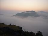 | 早朝に城跡に。 霧が出ていてとても幻想的でした。 |