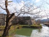 | スタンプをもらいに二度目の訪問。 前回は秋口に来たのですが、今回は粉雪のちみぞれ雪降る中で、 風情ある大書院が見られました。 堀の広さは見どころですが、今回は薄氷が張ってました。 緩やかな坂があるので雪の日は足元注意。 |