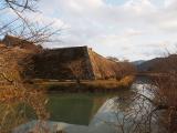 | 57城目!初登城 朝から、みぞれ交じりの雨が降る中、この城に登城! 外堀と石垣が残っていて、城跡で木造での御殿の復元は珍しいが、大書院が見事に復元されていました。藤堂高虎の築城ということか石垣と内堀の間の広い犬走も特徴的でした。天下普請(江戸幕府が諸大名に命令して行われた工事)ということで、天守閣は建てられなかったそうですが、天守台に今も残る石垣群を見るとこの城の堅固さがうかがえました。埋門(うずみもん)の石垣には築城に携わった大名を示す刻印が残っているそうですが、天候も悪く、少ししか見れず残念です。埋められてしまった城が多い中、3つの馬出が残っているのは珍しいそうですが、案内図がなく結局見ることができませんでした。できれば外堀から見れる馬出の案内があればいいなあと思いました。 |