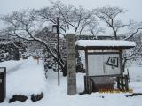| 還暦同窓会が京都で開催され、東京から参加、ついでの2城ツアー。 大雪に見舞われ、新幹線・福知山線のダイヤが乱れたが、篠山口からバス(西口・2番乗り場)で、二階町(280円)で下車。徒歩約5分で篠山城跡。積雪で歩道は歩けず、車道の轍を歩く。大書院への雪かきはありがたかった。 入館券(400円)のみで、四館共通券は雪のためパス。 スタンプは、書院入口すぐ右側にあった。 天守台と南馬出は見たかったが、雪のため断念。東馬出(写真)は、雪をかき分け確認するも、イメージだけ。 京都まで戻るため、そうそうに切り上げた。 |