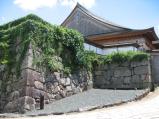 | 17城目 桐ヶ城 二条城より一般道経由で1時間40分です。 【 駐車場 】 三の丸西駐車場 (午後4時より無料) 【 個人的評価 】 65点 藤堂高虎お約束の"犬走りのある石垣"がすばらしいです。大書院だけの復元は少し寂しいです。門や長塀あたりが復元されると、ぐっといい感じになるのですが。 ここの城跡は観光客の姿もまばらで、石垣の上にすわり休んでいると何か時間が止まって いるような感じがして、安らいだ気分になりました。 こういうのんびりした城跡が自分の町にもあれば幸せなのですが......。 |