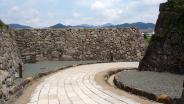 | 38城目。 駐車場から観たときは、「おっ、なかなかいいじゃん。」と思ったが、いざ大書院を観ると何か物足りない。いっそ復元すべきではなかったのではと思うくらいだった。ただし、石垣はなかなかのものであった。拝観後、お土産を買って駐車場に戻ったら、1時間以内は無料、「ラッキー!」。 |