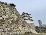 | 63城め。200名城スタンプラリーとしては、2019/12/28に次ぐ2巡目。四年前は、駆け足登城の予定も巽櫓に坤櫓の偉容に時間を費やしてしまったとはいえ本丸周辺のみの散策。今回は1時間ほど時間をかけて、正面入口から二ノ丸、巽櫓に坤櫓、桜堀、稲荷曲輪、天守台まで。明日からの三連休イベント準備で芝生広場には屋台が展開されていた。公園管理事務所でスタンプと御城印(日付用スタンプが備えられていて、筆が苦手な自分には有難い!)を頂き、次の姫路城へ。 |