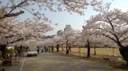 この城みるなら、桜の時期が一番オススメとのことで、桜満開の時に見に行きました。 どのアングルからとっても、ほんと立派な城ですね。 |