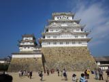 | 登城20城目。(兵庫遠征1/2城目。) 職場の旅行で、新幹線で姫路駅下車後、徒歩で、午前11時半頃、到着。 天気は、晴れ。 1,000円を払い入場後、大手門横でスタンプ押印。 約20年ぶり2回目の訪問。 天守閣まで1時間との案内、覚悟はしていましたが、さすがの数の観光客でした。 長い行列ができていて、天守閣前にたどりついても、中へ入る人数制限のため、待ち時間あり。中の階段前でも、また待ち時間。人混み中で、天守の造りを見ながら、やっとたどり着いた天守閣の最上階では、あまりの人の多さで、展望がほとんど出来ないといった状況でした。 人の流れの中での約1時間半の見学でしたが、化粧直しをした世界遺産白鷺城は、美しく絶景でした。 人が多くじっくりと見られなかったので、改めて、ゆっくりと見たいと思いました。 お昼を過ぎたので、姫路城近くで蒸しがきやおでんなどを食べて、職場メンバーから一人別行動をさせてもらい、移動のために姫路駅から次の目的地へ向かいました。 |
