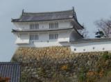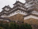 | 41城め。電車で訪問。雨の予報ですいてると思ったが、10時過ぎに券売所に着いた所で30分待ちの表示。スタンプは券売所左の管理事務所内に置いてある。状態よし。大天守閣手前の坂から行列。大天守の城内は大勢で狭い階段を昇る。最上階の6階は入れ替え制。神社があった。帰りに各階を見て回った。かなり暗いが現存天守なので構造や防御設備などが面白い。天守内で一時間。外に出て、大天守の周辺を回った。姫路城は小天守が複数あるので見る角度で趣きが変わる。斜めの角度がベター。また、千姫が過ごした西の堀の百間廊下は必見。その出口から眺める紅葉越しの天守閣が絶景だった。 |