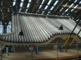 | 15城目。 大阪城で時間を使い、姫路城での「天空の白鷺」の予約時間に間に合わせるため、地下鉄を乗り継ぎ新大阪へ出て、新幹線で姫路駅へ。そこからタクシーで姫路城入口へ。ここも5〜6回目の登場か。しかし現在は平成の大修理中で、大天守は巨大な覆いに包まれそこの天守の絵が描写。今回はこの中の仮設ビルから工事現場をのぞける「天空の白鷺」を15時〜16時で予約し、何とか16時に間に合いました。日曜ながらそれほどの混雑はなく、エレベーターで最上階の補修現場前へ上がり、パネルや映像での大修理の解説を参考にしつつ、修理の進行状況を直に鑑賞しました。当日は作業休みながら瓦の葺き替え、壁の補修などの工事は順調で、2015年3月には新たな天守の姿を見せられるということで、その日の再訪を期待しつつ、西の丸の長大な渡櫓を巡って千姫の生活再現を見た後、城を後にしました。 |