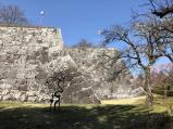 | 散り際だが、桜が綺麗。石垣も見事。 消防訓練だそうで、朝一に行ったが、駐車場を10時までしか使えず。 |