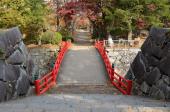 スタンプ59個目。大通りをブラブラ歩いて行くと、突然、巨大な石積みが現れました。紅葉と雨に濡れた石積みがなかなか美しく、写真撮影大会が行われていました。1時間ほど散策した後、石川啄木新婚の家まで徒歩10分、さらに盛岡駅まで徒歩10分でした。 |