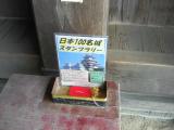 | 2城目。 姫路駅前でレンタカーを借りて約45分で到着です。 本丸櫓門の入ってすぐ左にある机の上にポツンとスタンプが置いてありました。 火力発電所の煙突が見えたり、近くの大石神社の結婚式の神楽が聞こえて 不思議な雰囲気でした。 |