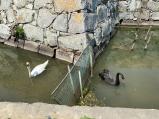 | 南沖櫓台を境に離れ離れにされている白鳥&黒鳥。 餌をあげると白鳥は、お尻をフリフリ! 黒鳥は、鳴きます!可愛いすぎます。 |